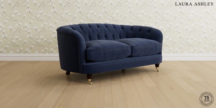 7.0.3 Buy Hathersage by Laura Ashley 2 Seater Sofa Nantmor Midnight Navy Low Brass Castor - Chestnut from the Next UK online shop Click here to use our accessible website