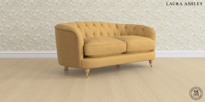 7.0.3 Buy Hathersage by Laura Ashley 2 Seater Sofa Peyton Ochre Yellow Low Brass Castor - Light Oak from the Next UK online shop Click here to use our accessible website