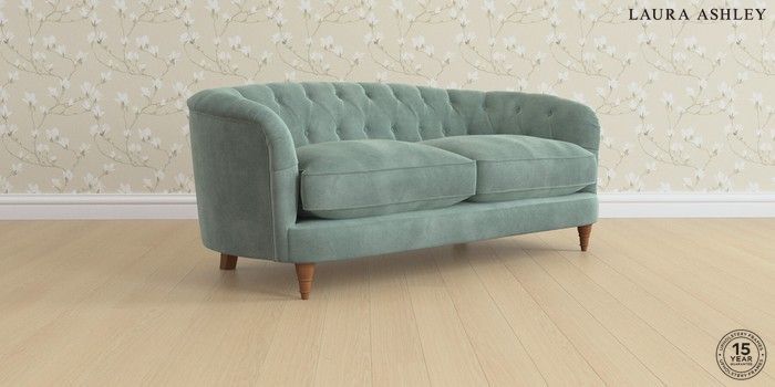 7.0.3 Buy Hathersage by Laura Ashley 3 Seater Small Sofa Ailsworth Fern Green Low Turned - Teak from the Next UK online shop Click here to use our accessible website