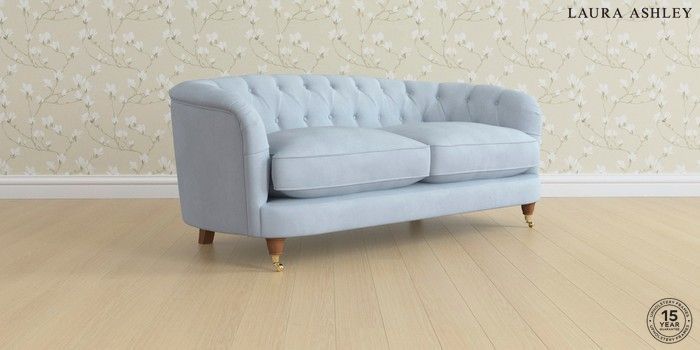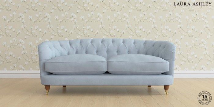 7.0.3 Buy Hathersage by Laura Ashley 3 Seater Small Sofa Ailsworth Newport Blue Low Brass Castor - Teak from the Next UK online shop Click here to use our accessible website