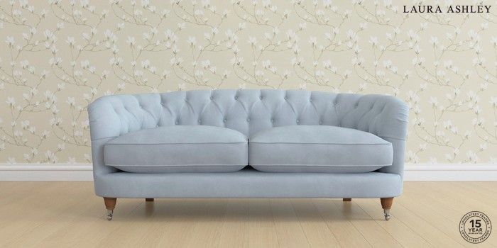 7.0.3 Buy Hathersage by Laura Ashley 3 Seater Small Sofa Ailsworth Newport Blue Low Chrome Castor - Teak from the Next UK online shop Click here to use our accessible website