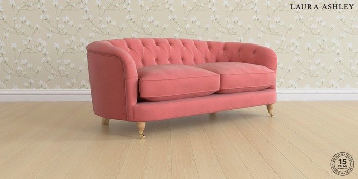 7.0.3 Buy Hathersage by Laura Ashley 3 Seater Small Sofa Ailsworth Old Rose Pink Low Brass Castor - Light Oak from the Next UK online shop Click here to use our accessible website