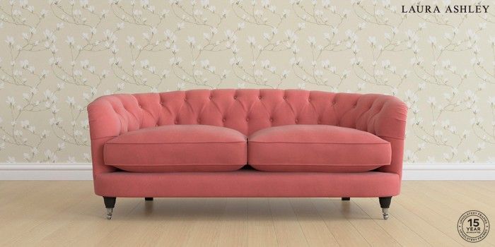 7.0.3 Buy Hathersage by Laura Ashley 3 Seater Small Sofa Ailsworth Old Rose Pink Low Chrome Castor - Black from the Next UK online shop Click here to use our accessible website