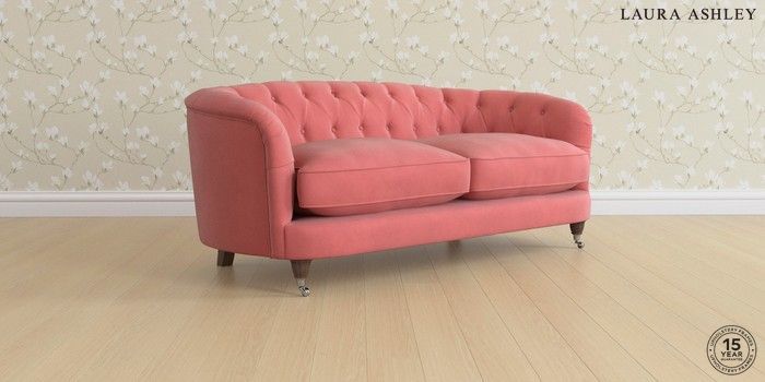 7.0.3 Buy Hathersage by Laura Ashley 3 Seater Small Sofa Ailsworth Old Rose Pink Low Chrome Castor - Chestnut from the Next UK online shop Click here to use our accessible website