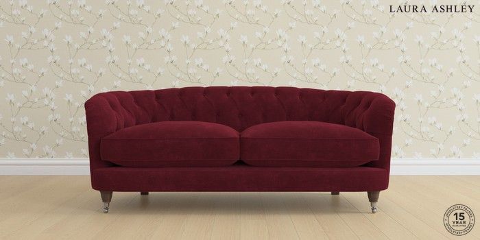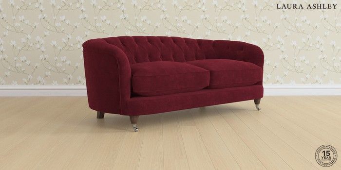 7.0.3 Buy Hathersage by Laura Ashley 3 Seater Small Sofa Alwyn Velvet Burgundy Red Low Chrome Castor - Chestnut from the Next UK online shop Click here to use our accessible website