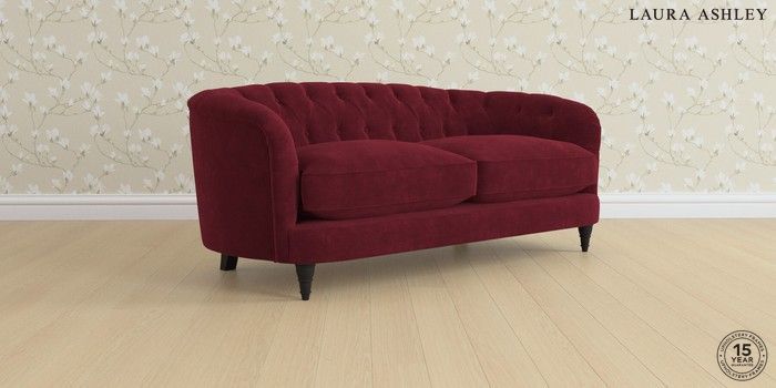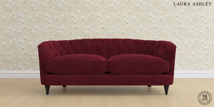 7.0.3 Buy Hathersage by Laura Ashley 3 Seater Small Sofa Alwyn Velvet Burgundy Red Low Turned - Black from the Next UK online shop Click here to use our accessible website