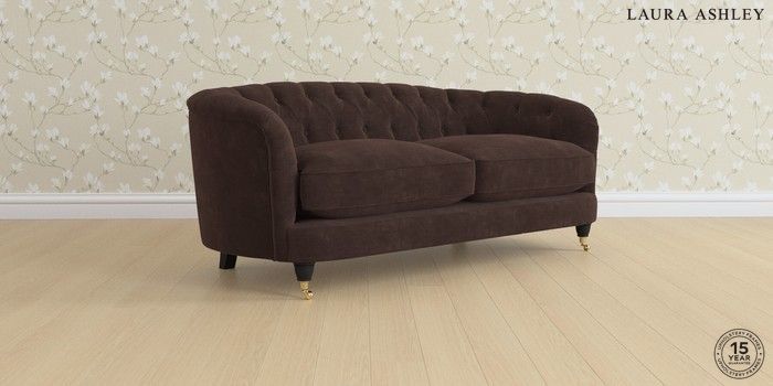 7.2.4 Buy Hathersage by Laura Ashley 3 Seater Small Sofa Alwyn Velvet Chocolate Brown Low Brass Castor - Black from the Next UK online shop Click here to use our accessible website
