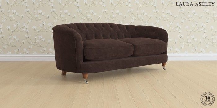 7.0.3 Buy Hathersage by Laura Ashley 3 Seater Small Sofa Alwyn Velvet Chocolate Brown Low Chrome Castor - Teak from the Next UK online shop Click here to use our accessible website