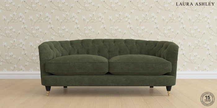 7.0.3 Buy Hathersage by Laura Ashley 3 Seater Small Sofa Alwyn Velvet Ivy Green Low Brass Castor - Black from the Next UK online shop Click here to use our accessible website