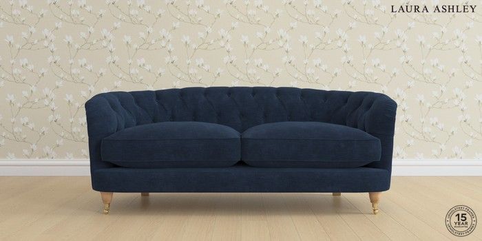 7.0.3 Buy Hathersage by Laura Ashley 3 Seater Small Sofa Alwyn Velvet Midnight Navy Low Brass Castor - Light Oak from the Next UK online shop Click here to use our accessible website