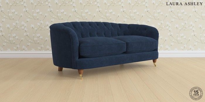 7.0.3 Buy Hathersage by Laura Ashley 3 Seater Small Sofa Alwyn Velvet Midnight Navy Low Brass Castor - Teak from the Next UK online shop Click here to use our accessible website