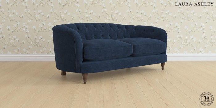 7.0.3 Buy Hathersage by Laura Ashley 3 Seater Small Sofa Alwyn Velvet Midnight Navy Low Turned - Chestnut from the Next UK online shop Click here to use our accessible website
