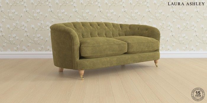 7.0.3 Buy Hathersage by Laura Ashley 3 Seater Small Sofa Alwyn Velvet Olive Green Low Brass Castor - Light Oak from the Next UK online shop Click here to use our accessible website
