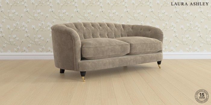 7.0.3 Buy Hathersage by Laura Ashley 3 Seater Small Sofa Alwyn Velvet Truffle Natural Low Brass Castor - Black from the Next UK online shop Click here to use our accessible website