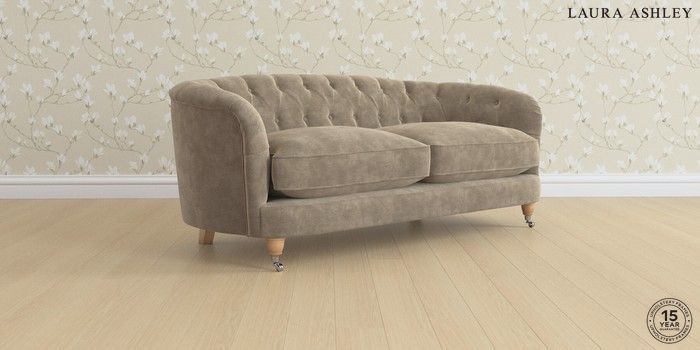 7.0.3 Buy Hathersage by Laura Ashley 3 Seater Small Sofa Alwyn Velvet Truffle Natural Low Chrome Castor - Light Oak from the Next UK online shop Click here to use our accessible website