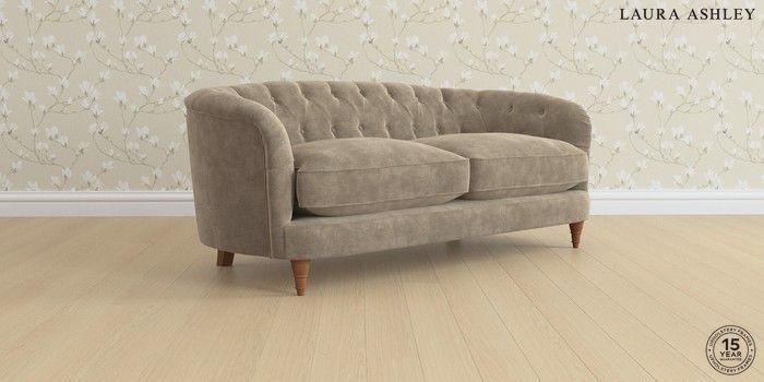 7.0.3 Buy Hathersage by Laura Ashley 3 Seater Small Sofa Alwyn Velvet Truffle Natural Low Turned - Teak from the Next UK online shop Click here to use our accessible website