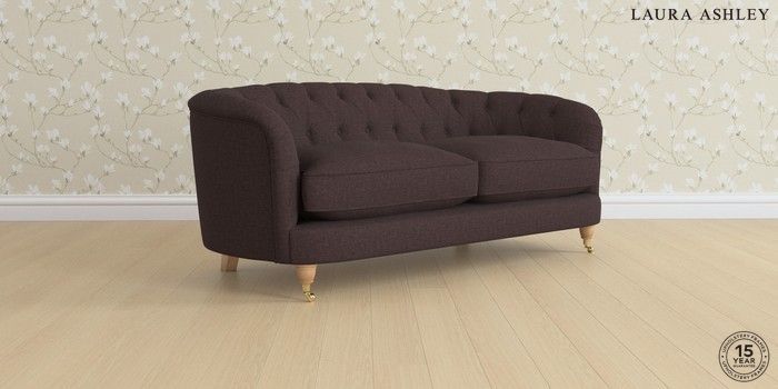 7.0.3 Buy Hathersage by Laura Ashley 3 Seater Small Sofa Bainton Chocolate Brown Low Brass Castor - Light Oak from the Next UK online shop Click here to use our accessible website