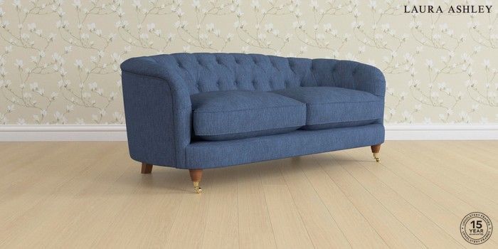 7.0.3 Buy Hathersage by Laura Ashley 3 Seater Small Sofa Bainton Midnight Navy Low Brass Castor - Teak from the Next UK online shop Click here to use our accessible website