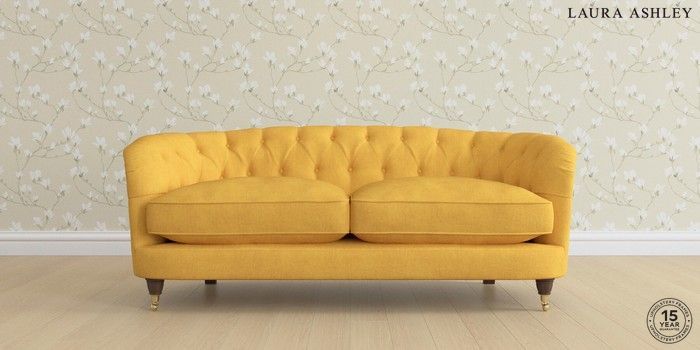 7.0.3 Buy Hathersage by Laura Ashley 3 Seater Small Sofa Bainton Ochre Yellow Low Brass Castor - Chestnut from the Next UK online shop Click here to use our accessible website