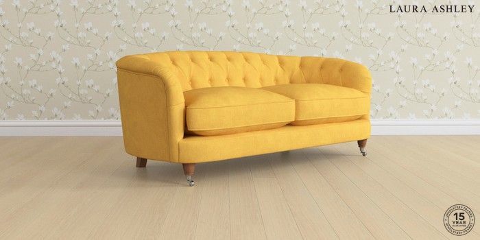 7.0.3 Buy Hathersage by Laura Ashley 3 Seater Small Sofa Bainton Ochre Yellow Low Chrome Castor - Teak from the Next UK online shop Click here to use our accessible website