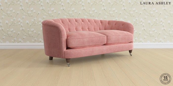 7.0.3 Buy Hathersage by Laura Ashley 3 Seater Small Sofa Bainton Old Rose Pink Low Chrome Castor - Chestnut from the Next UK online shop Click here to use our accessible website
