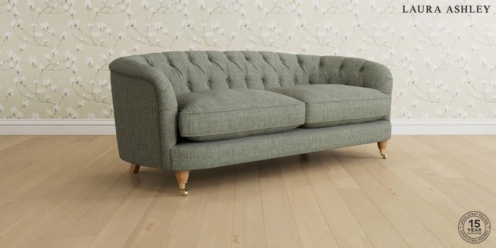 7.0.3 Buy Hathersage by Laura Ashley 3 Seater Small Sofa Bainton Sage Green Low Brass Castor - Light Oak from the Next UK online shop Click here to use our accessible website
