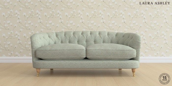 7.0.3 Buy Hathersage by Laura Ashley 3 Seater Small Sofa Borwick Newport Blue Low Brass Castor - Light Oak from the Next UK online shop Click here to use our accessible website