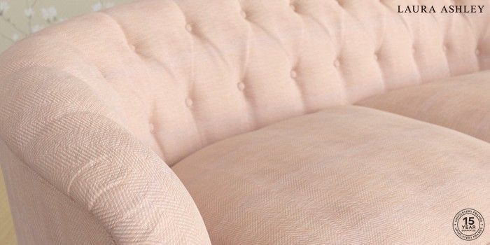 7.0.3 Buy Hathersage by Laura Ashley 3 Seater Small Sofa Edwin Chenille Blush Pink Low Brass Castor - Light Oak from the Next UK online shop Click here to use our accessible website