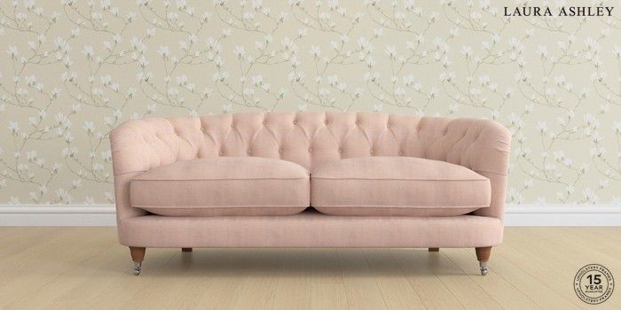 7.0.3 Buy Hathersage by Laura Ashley 3 Seater Small Sofa Edwin Chenille Blush Pink Low Chrome Castor - Teak from the Next UK online shop Click here to use our accessible website