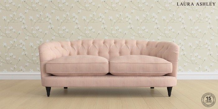 7.0.3 Buy Hathersage by Laura Ashley 3 Seater Small Sofa Edwin Chenille Blush Pink Low Turned - Black from the Next UK online shop Click here to use our accessible website