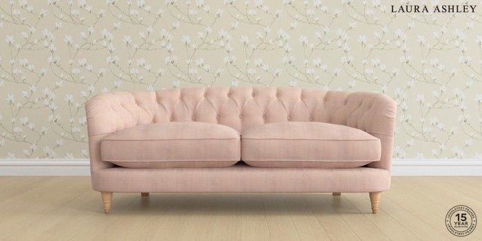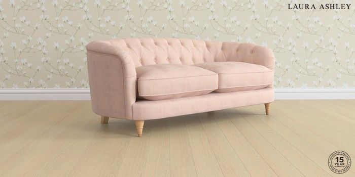 7.0.3 Buy Hathersage by Laura Ashley 3 Seater Small Sofa Edwin Chenille Blush Pink Low Turned - Light Oak from the Next UK online shop Click here to use our accessible website