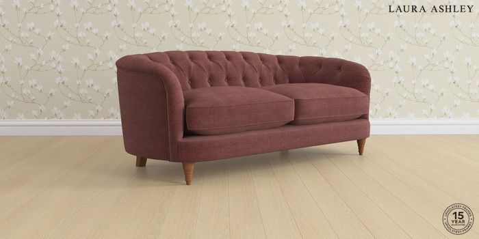 7.0.3 Buy Hathersage by Laura Ashley 3 Seater Small Sofa Edwin Chenille Burgundy Red Low Turned - Teak from the Next UK online shop Click here to use our accessible website