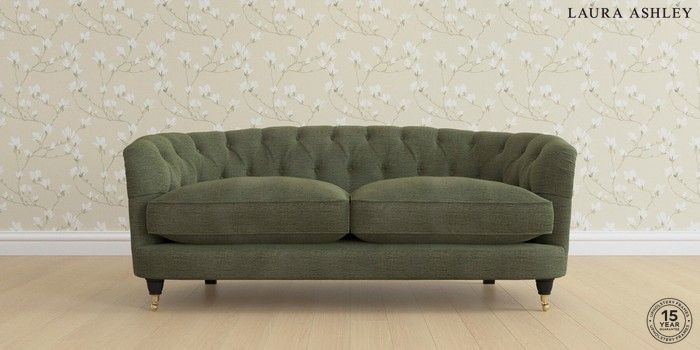 7.0.3 Buy Hathersage by Laura Ashley 3 Seater Small Sofa Edwin Chenille Hedgerow Green Low Brass Castor - Black from the Next UK online shop Click here to use our accessible website