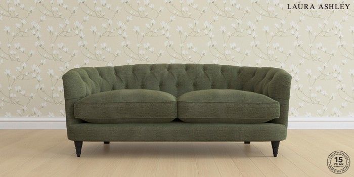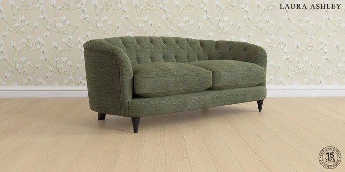 7.0.3 Buy Hathersage by Laura Ashley 3 Seater Small Sofa Edwin Chenille Hedgerow Green Low Turned - Black from the Next UK online shop Click here to use our accessible website