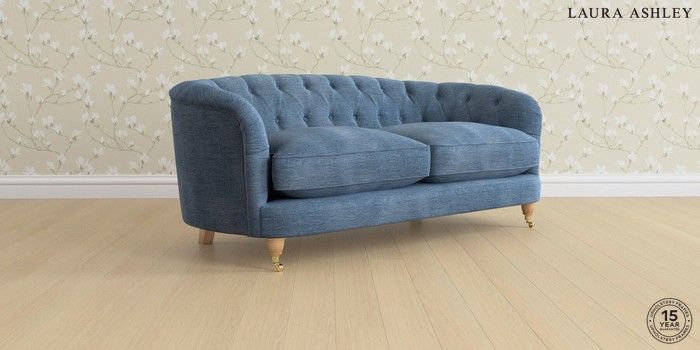 7.0.3 Buy Hathersage by Laura Ashley 3 Seater Small Sofa Edwin Chenille Seaspray Blue Low Brass Castor - Light Oak from the Next UK online shop Click here to use our accessible website