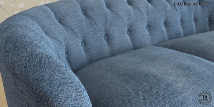 7.0.3 Buy Hathersage by Laura Ashley 3 Seater Small Sofa Edwin Chenille Seaspray Blue Low Chrome Castor - Black from the Next UK online shop Click here to use our accessible website