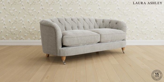 7.0.3 Buy Hathersage by Laura Ashley 3 Seater Small Sofa Edwin Chenille Silver Grey Low Chrome Castor - Light Oak from the Next UK online shop Click here to use our accessible website