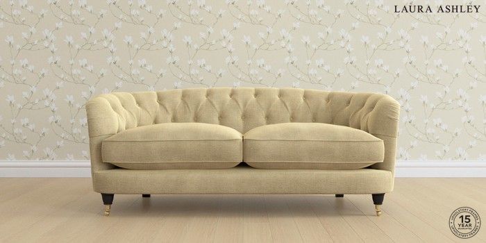 7.0.3 Buy Hathersage by Laura Ashley 3 Seater Small Sofa Edwin Chenille Truffle Natural Low Brass Castor - Black from the Next UK online shop Click here to use our accessible website
