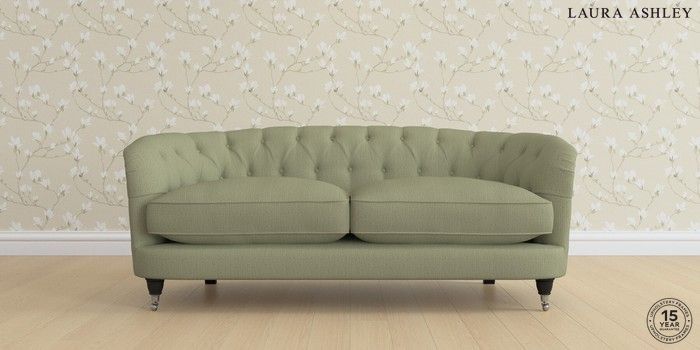 7.0.3 Buy Hathersage by Laura Ashley 3 Seater Small Sofa Edwin Herringbone Hedgerow Green Low Chrome Castor - Black from the Next UK online shop Click here to use our accessible website
