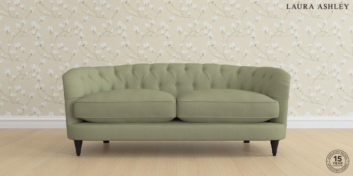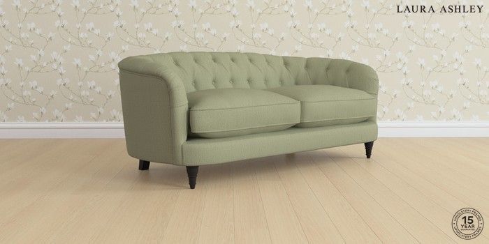 7.0.3 Buy Hathersage by Laura Ashley 3 Seater Small Sofa Edwin Herringbone Hedgerow Green Low Turned - Black from the Next UK online shop Click here to use our accessible website
