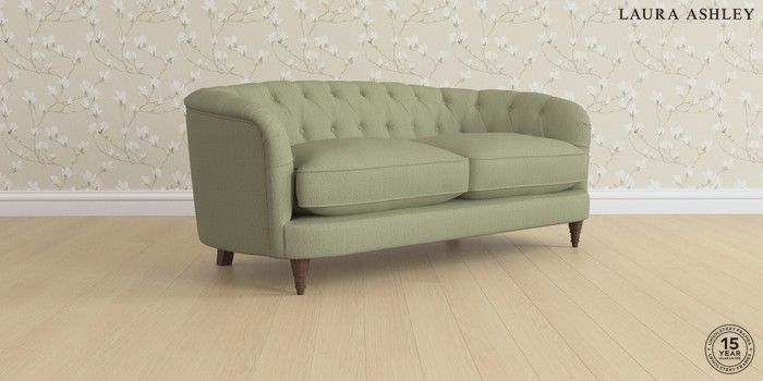 7.0.3 Buy Hathersage by Laura Ashley 3 Seater Small Sofa Edwin Herringbone Hedgerow Green Low Turned - Chestnut from the Next UK online shop Click here to use our accessible website