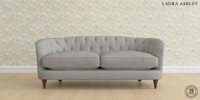 7.0.3 Buy Hathersage by Laura Ashley 3 Seater Small Sofa Edwin Herringbone Pale Steel Grey Low Turned - Chestnut from the Next UK online shop Click here to use our accessible website