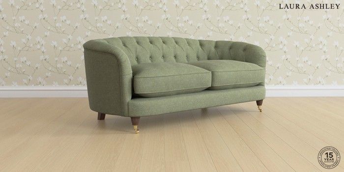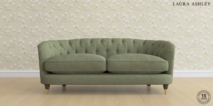 7.0.3 Buy Hathersage by Laura Ashley 3 Seater Small Sofa Harley Moss Green Low Brass Castor - Chestnut from the Next UK online shop Click here to use our accessible website
