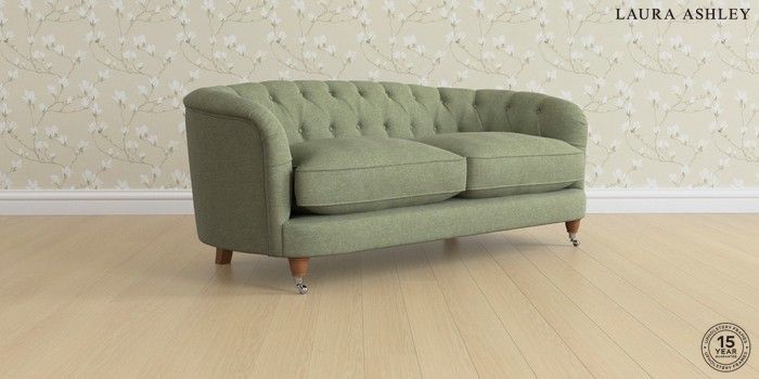 7.0.3 Buy Hathersage by Laura Ashley 3 Seater Small Sofa Harley Moss Green Low Chrome Castor - Teak from the Next UK online shop Click here to use our accessible website