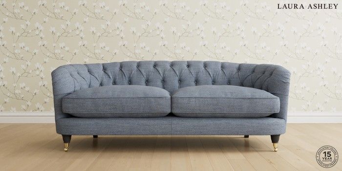 7.0.3 Buy Hathersage by Laura Ashley 3 Seater Small Sofa Harley Seaspray Blue Low Brass Castor - Black from the Next UK online shop Click here to use our accessible website