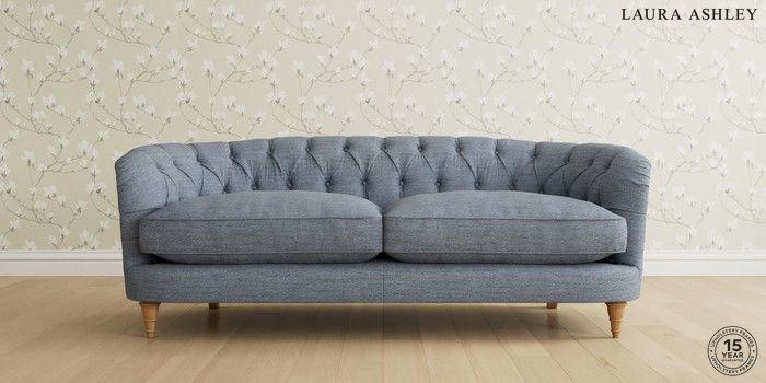 7.0.3 Buy Hathersage by Laura Ashley 3 Seater Small Sofa Harley Seaspray Blue Low Turned - Light Oak from the Next UK online shop Click here to use our accessible website