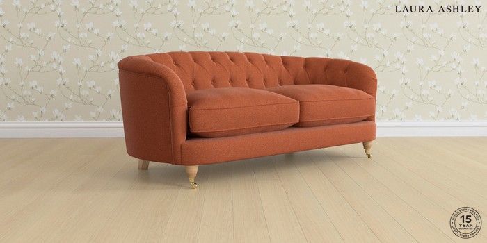 7.0.3 Buy Hathersage by Laura Ashley 3 Seater Small Sofa Harley Terracotta Orange Low Brass Castor - Light Oak from the Next UK online shop Click here to use our accessible website