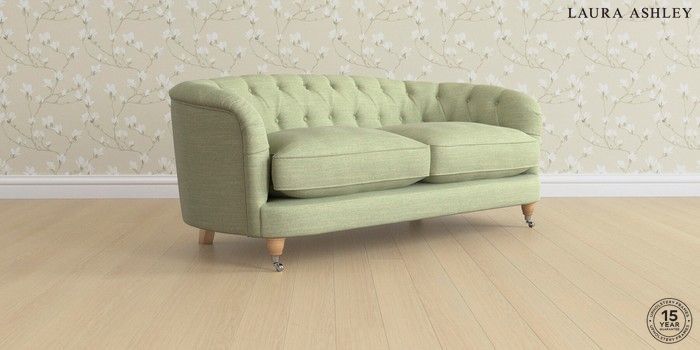 7.0.3 Buy Hathersage by Laura Ashley 3 Seater Small Sofa Kinsham Hedgerow Green Low Chrome Castor - Light Oak from the Next UK online shop Click here to use our accessible website