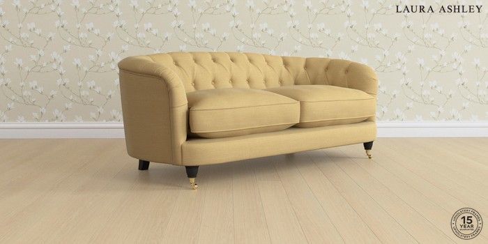 7.0.3 Buy Hathersage by Laura Ashley 3 Seater Small Sofa Kinsham Ochre Yellow Low Brass Castor - Black from the Next UK online shop Click here to use our accessible website