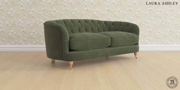 7.0.3 Buy Hathersage by Laura Ashley 3 Seater Small Sofa Lundar Chenille Ivy Green Low Brass Castor - Light Oak from the Next UK online shop Click here to use our accessible website